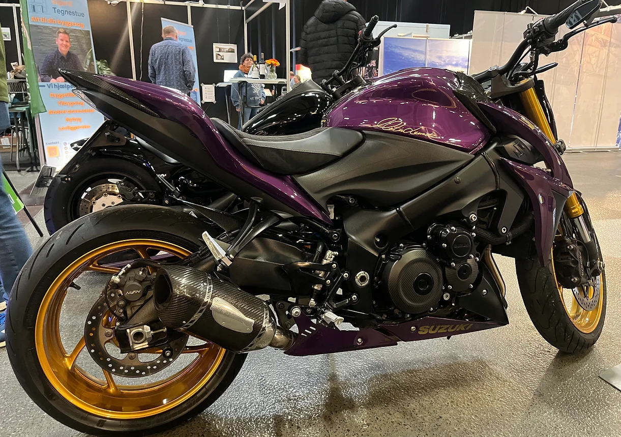 Unik gennemført GSXS1000 med custom bagende, sæde mm. LED forlygte, E-mærket sports udstøding, LED løbe-blink og lygter mm. Spec luftfiltre, Orig dele medf. med pass løsning. Rullet ved Pixboksen til 152 hk.